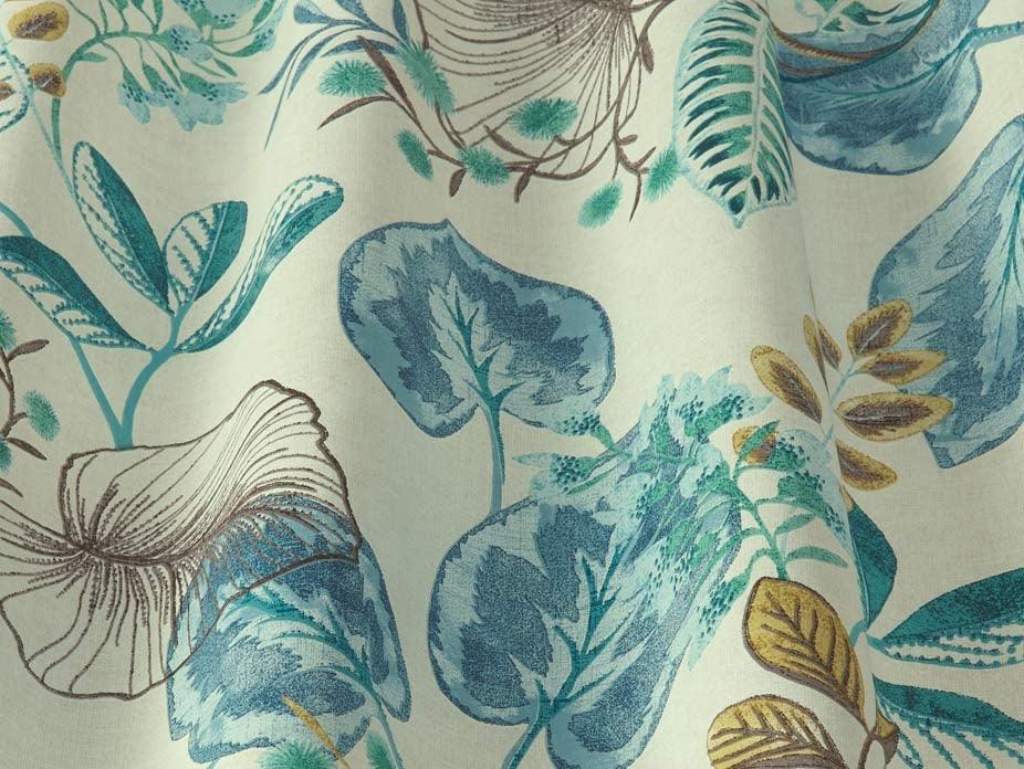 Fandango is a large leafed print with a sprig of white flowers on a 100% cotton fabric also suitable for upholstery.